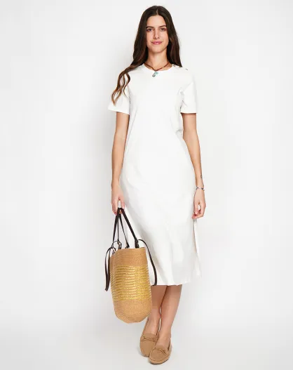 Robe en Lin mélangé Rose blanc casse