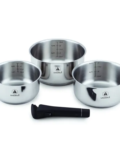 3 Casseroles amovible anti-adhésif Greblon CK Céramique 'Alizée' induction noire