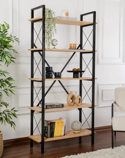 Bibliothèque Elysian chêne/noir - 180x90x33.5 cm