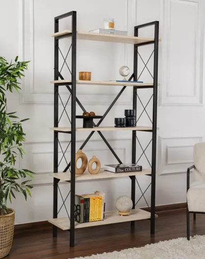 Bibliothèque Elysian travertin/noir - 180x90x33.5 cm