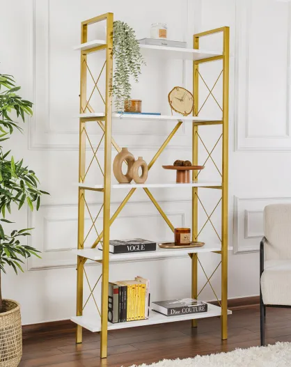 Bibliothèque Elysian blanc/doré - 180x90x33.5 cm