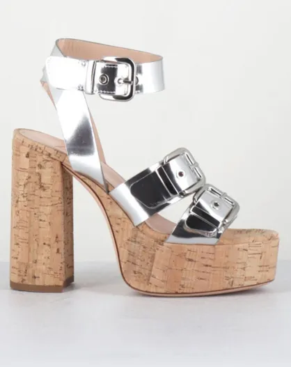 Sandales en Cuir Korni argentées - Talon 10 cm
