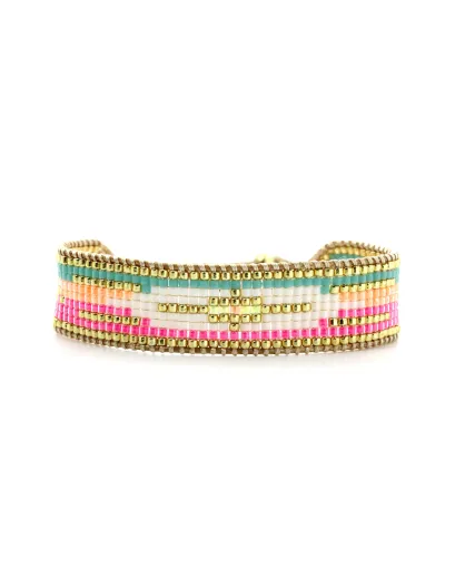 Bracelet Salvador De Bahia Charly rose fluo, corail rosé fluo, vert fluo, doré