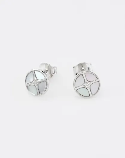 Boucles d'Oreilles Argent Cross Nacre Blanche et Oxyde de Zirconium