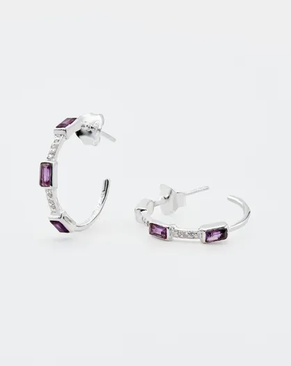 Boucles d'Oreilles Argent Liana Améthyste Violette et Oxyde de Zirconium