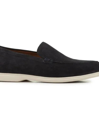 Mocassins en Velours de Cuir Venzone bleu marine