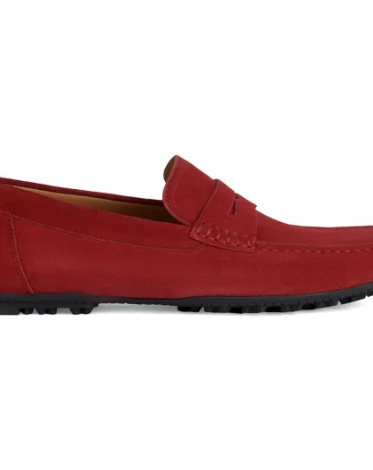 Mocassins en Velours de Cuir Kosmopolis rouge foncé