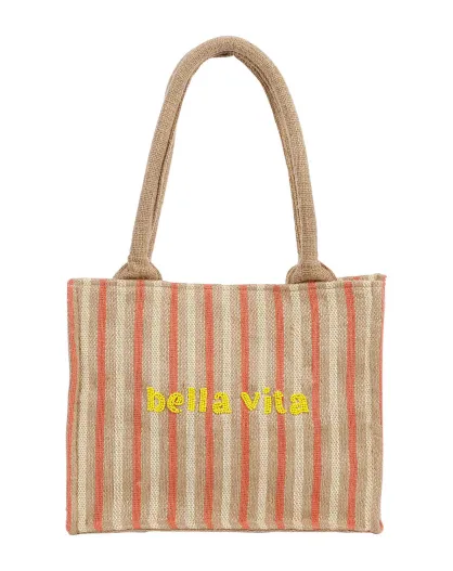Sac en Jute Bella Palma rouge/naturel - 35x15x28 cm