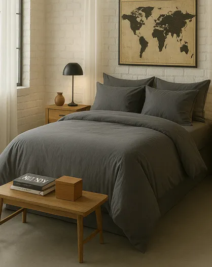 Housse de Couette 100% Percale de Coton - Finition Bouteille 40cm gris magnet