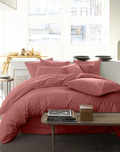 Housse de Couette 100% Percale de Coton - Finition Bouteille 40cm vieux rose