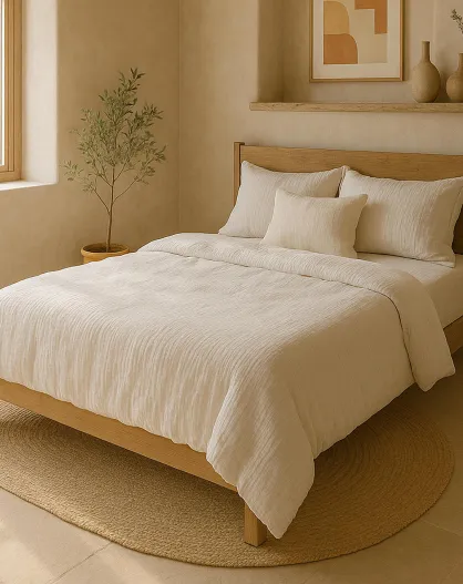 Housse de Couette 100% Gaze de Coton Lavé blanc pur