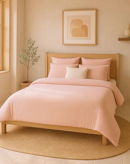 Housse de Couette 100% Gaze de Coton Lavé rose lotus