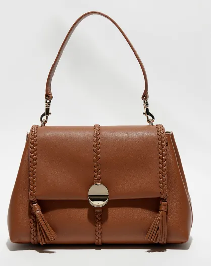 Sac porté épaule en Cuir Pénélope caramel - 35x24x13 cm