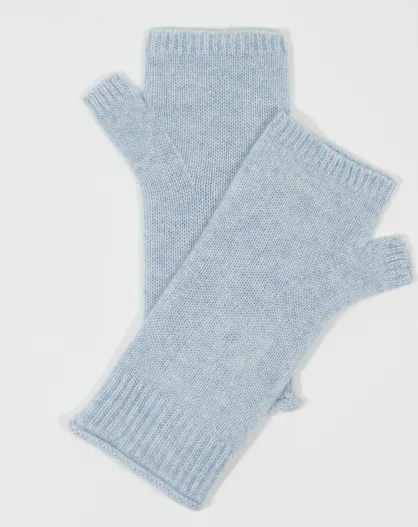 Mitaines 100% Cachemire poignets en côtes Mindy icy blue