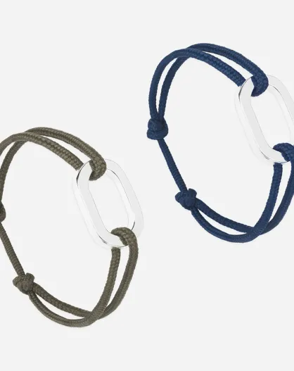 2 Bracelets Tige + Darse en plaqué Argent bleu marine/kaki