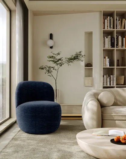 Fauteuil pivotant Eden Tissu tramé toucher doux bleu nuit - 73x76x80 cm