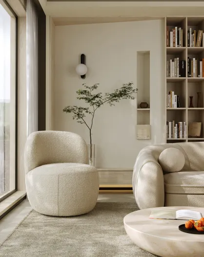 Fauteuil pivotant Eden en Bouclette crème - 73x76x80 cm