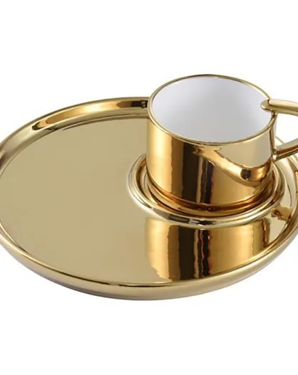 Tasse à Cappucino & Assiette en Porcelaine For Coffee Lovers dorée - D.16 cm