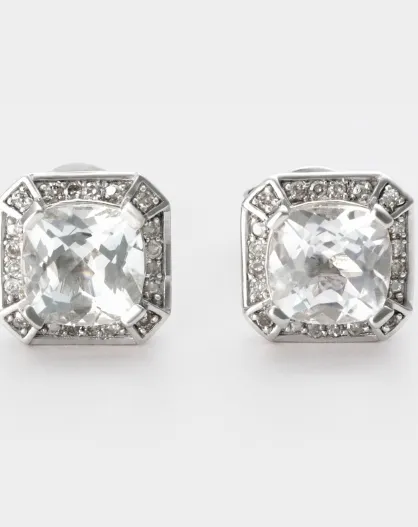 Boucles d'oreilles Coeur de Lumière Diamants 0.112 ct & Topaze bleue 3.52 ct or blanc