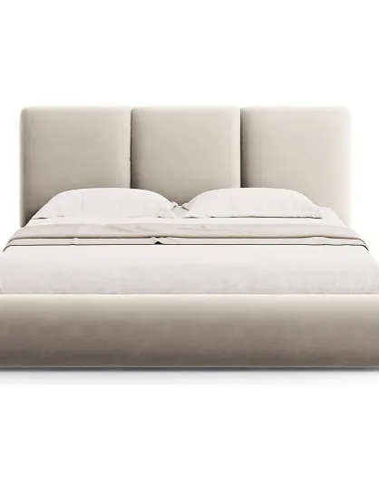 Lit Coffre en Velours Avec Tête de Lit Nicolas beige clair - 220x160x100 cm