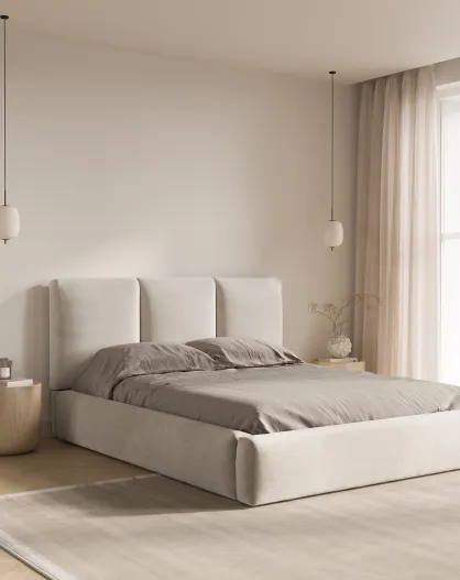Lit coffre avec tête de lit Arendal beige clair - 200x200 cm