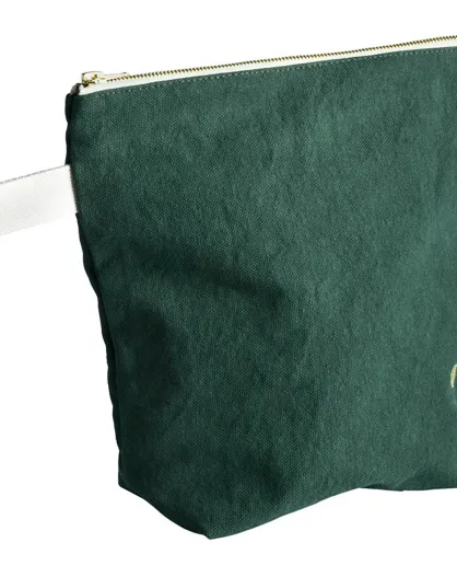 Trousse de toilette en Coton Bio Iona vert foncé - 28x23x10 cm