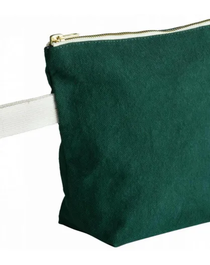 Trousse de toilette en Coton Bio Iona vert foncé - 22x18x7.5 cm