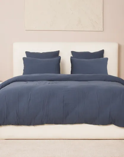Parure de Couette 3 pcs 100% Gaze de Coton Lavé bleu petrole