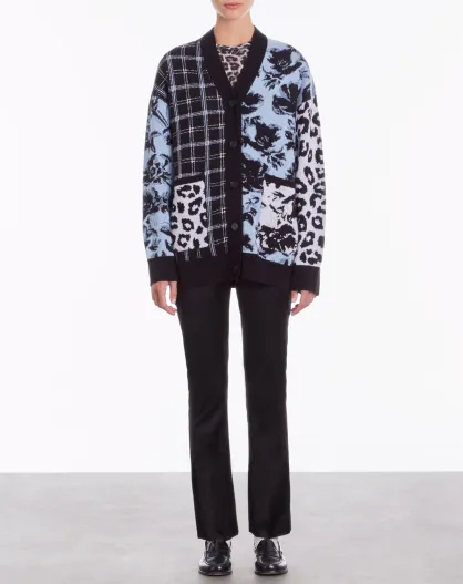 Cardigan en Laine mélangée avec patchwork bleu