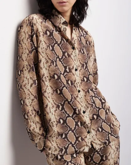 Chemise 100% Soie python beige