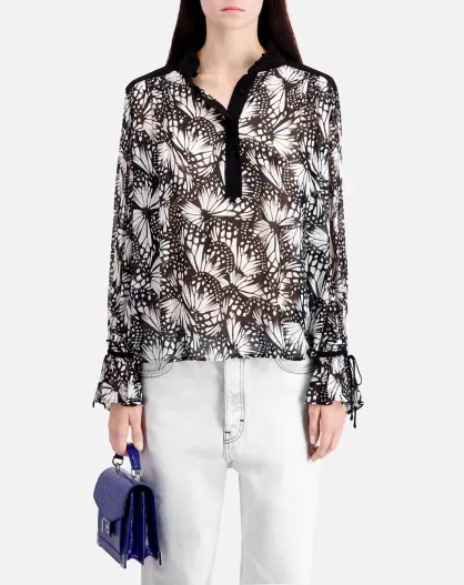 Top imprimé avec détails contrastés noir