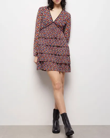 Robe courte plissée multicolore