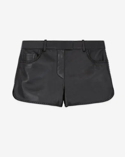 Short en Cuir à clous noir