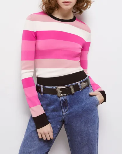 Pull court à rayures rose