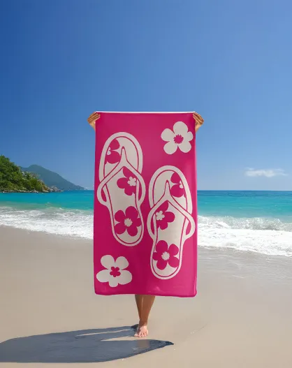 Serviette de plage éponge velours Jacquard rose - 90x170 cm