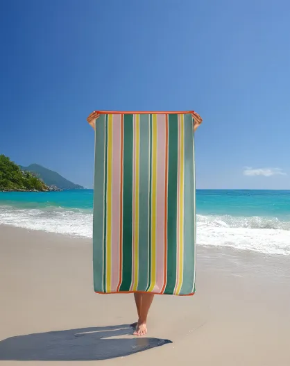 Serviette de plage éponge velours Jacquard multicolore - 100x175 cm
