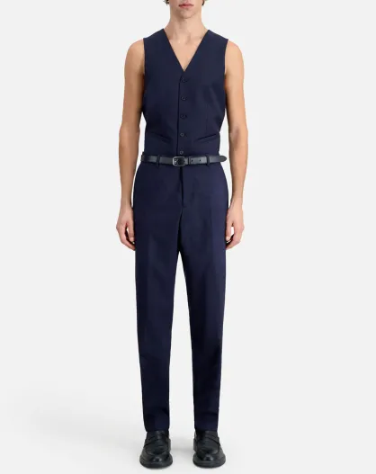 Pantalon de Costume 100% Laine à micro motifs bleu marine