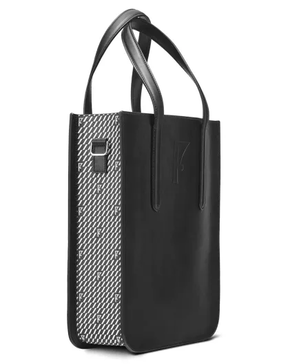 Sac en Cuir & Toile enduite Dune noir/blanc - 35x28x8 cm
