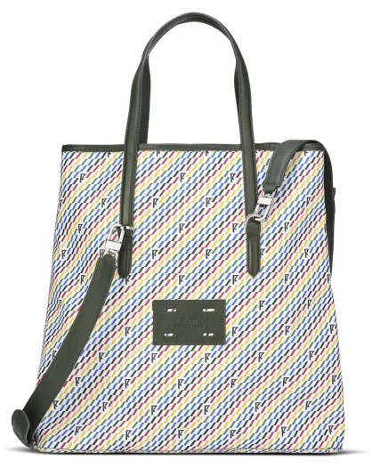 Sac en Toile enduite & Cuir Faret vert/multicolore - 38x36x8.5 cm