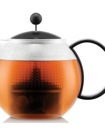 Théière à piston, couvercle, anse et filtre Assam noire - 1 L