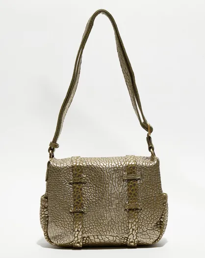 Sac besace en Cuir Bess J vert kaki - 25x20x7 cm
