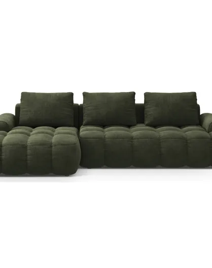 Canapé d'angle gauche en Velours convertible avec coffre Linz 3 places vert - 275x142x84 cm