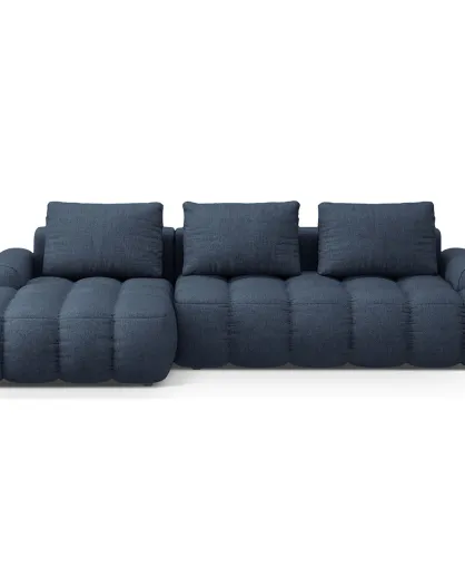 Canapé d'angle gauche convertible avec coffre Linz 3 places bleu foncé - 275x142x84 cm