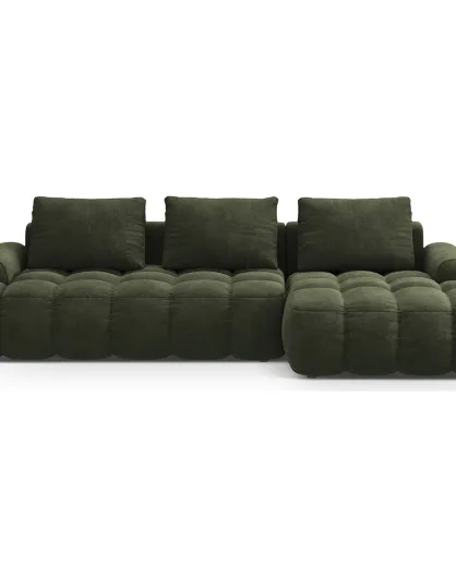 Canapé d'angle droit en Velours convertible avec coffre Linz 3 places vert - 275x142x84 cm