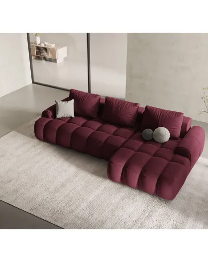Canapé d'angle droit convertible avec coffre Linz 3 places bordeaux - 275x142x84 cm