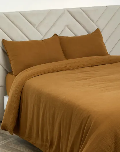 Housse de couette en Lin & Coton Finition Bouton Nacre Limy Terre Brûlée