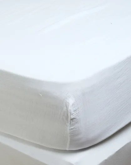 Drap housse Dili en double voile de coton blanc
