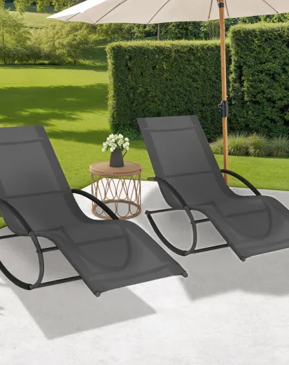 2 Transats à bascule Malawi en acier et textilène gris anthracite