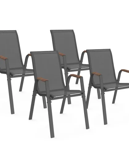 4 Chaises de jardin Ozéa en textilène et rotin gris anthracite/rotin