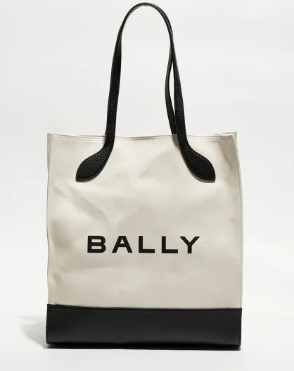 Sac shopping avec logo en Coton & Cuir Bally naturel/noir - 35x40x12 cm